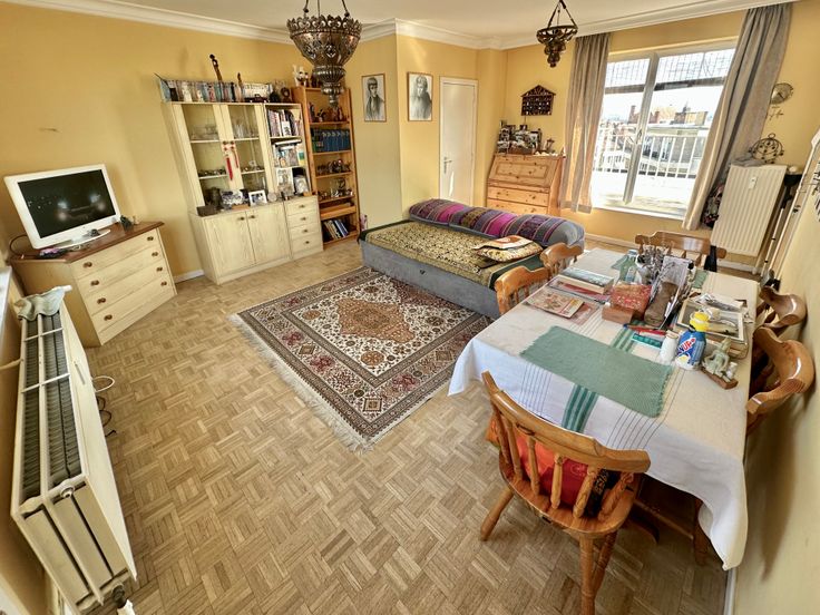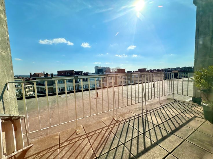 La copropriété entreprend bientôt d’importants travaux d’isolation de la toiture (déjà financés par les copropriétaires) qui amélioreront énormément le PEB. La terrasse sera donc complètement rénovée également. Les châssis sont actuellement en simple vitrage. Cet appartement est très agréable et très calme (pas de voisin latéraux).