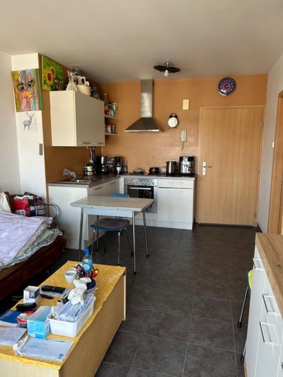 Ce bien est vendu par internet à partir du 11/06/2025 jusqu'au 19/06/2025. Studio loué avec une chambre à coucher, cave et parking à Eupen, dans le complexe "Eupen Plaza"