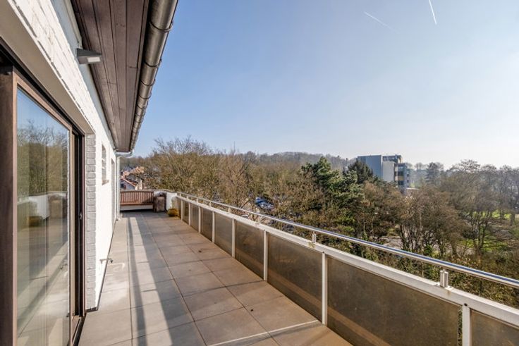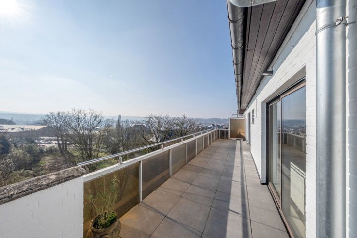 Prachtig penthouse gelegen in Luik, genietend van een panoramisch uitzicht over de stad en de vallei! Dit onlangs gerenoveerde appartement is als volgt samengesteld: inkomhal met apart toilet, een ruime woonkamer badend in natuurlijk licht die toegang geeft tot een eerste terras met een adembenemend uitzicht over Luik, een ingerichte keuken met berging, twee grote slaapkamers met elk directe toegang tot een tweede terras omgeven door groen, een badkamer. Diversen: berging op de overloop, een kelder, een parkeerplaats. Provisie voor kosten: € 300/maand (water, verwarming, gemeenschappelijke kosten). Elektriciteit conform! Zeer uitzonderlijk om niet te missen! Informatie en bezoeken, contacteer ons op 04/380.00.06