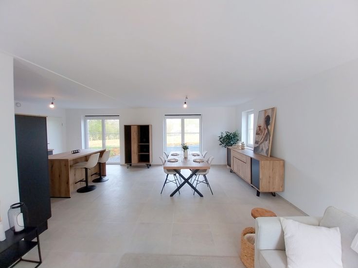 Eléments techniques : pompe à chaleur, chauffage sol, 10 panneaux photovoltaïques, citerne eau de pluie, cuisine équipée et sanitaires inclus.