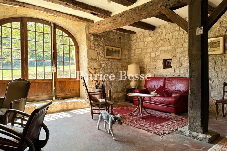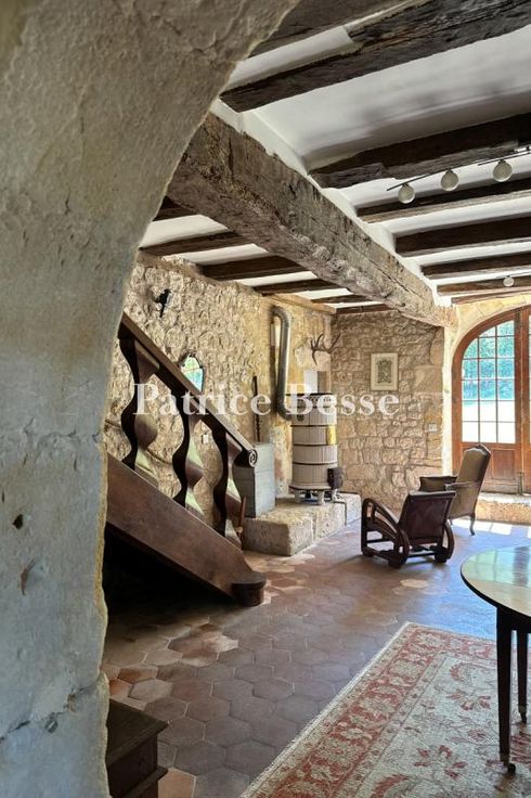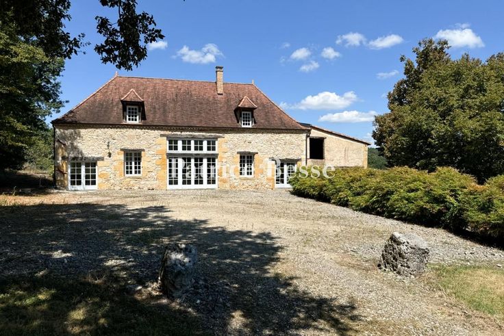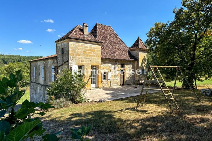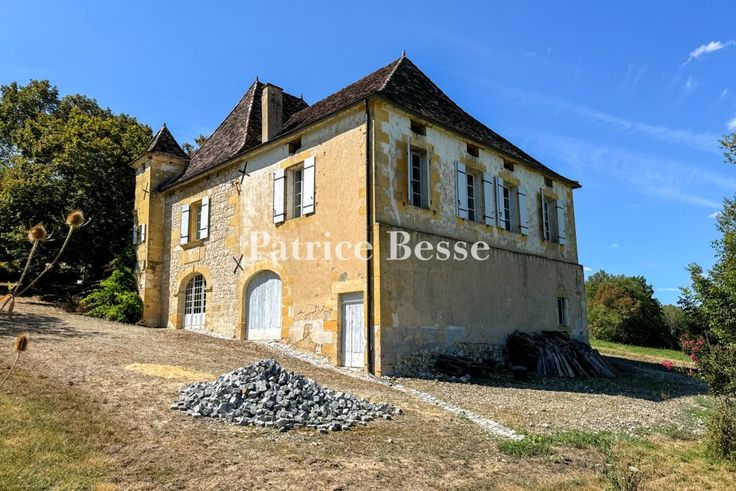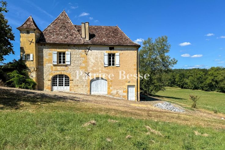 Dans le Périgord pourpre, proche de Bergerac et de son aéroport, isolés, une maison forte et son gîte entourés de 18 ha de terres et 20 ha en option. Située en zone rurale au centre d'une vaste prairie protégée par des bois, la propriété est un ancien relais de chevaux médiéval construit en bordure d'une antique voie romaine. Un long chemin de terre qui borde la forêt permet de rejoindre un hangar agricole puis l'ensemble des bâtiments d'habitation. La maison forte, massive, présente un rez-de-chemin inférieur et un rez-de-jardin face à une terrasse afin de s'adapter à la pente. À partir d'un premier édifice rectangulaire datant du Moyen Âge doté d'éléments défensifs, la bâtisse a évolué vers un plan quasiment carré avec la construction à l'est d'une extension doublant sa surface. La partie la plus ancienne est bâtie en moellons et surmontée d'un toit en croupe de tuiles plates. Elle est flanquée d'une tourelle et d'une tour de plan carré coiffées de toits en pavillon et édifiées en pierre de taille - la même que celle utilisée pour les encadrements de baie et les chaînages d'angle. La partie la plus récente présente des façades recouvertes d'enduit et un toit similaire à celui de la partie antérieure.