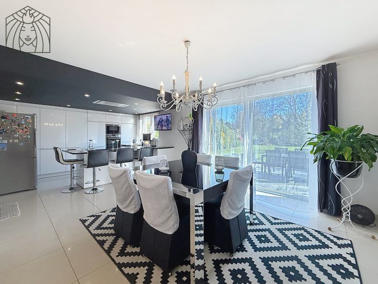 D’une superficie habitable d’environ 150 m² (hors caves et garage), elle se compose d’un séjour lumineux avec accès direct à l’extérieur, d’une cuisine, de quatre chambres, d’une salle d’eau, ainsi que d’une buanderie. Deux grandes terrasses permettent de profiter pleinement du jardin et de la parcelle généreuse de 11 ares 52.