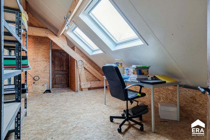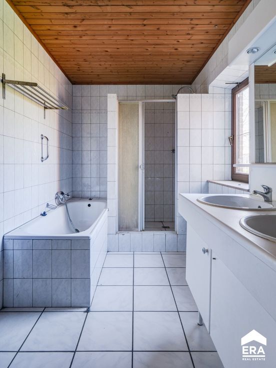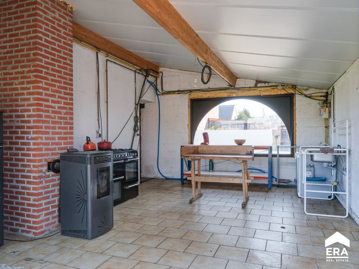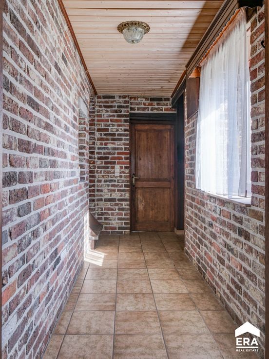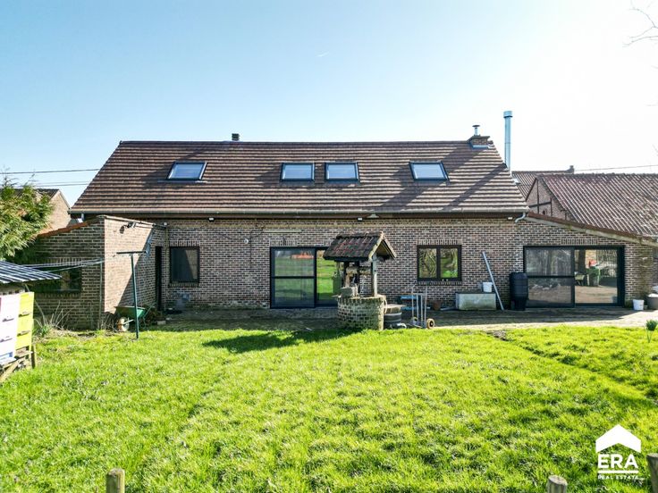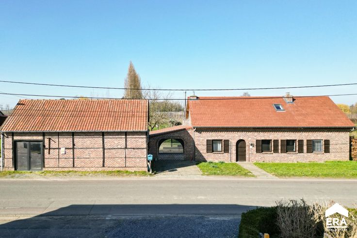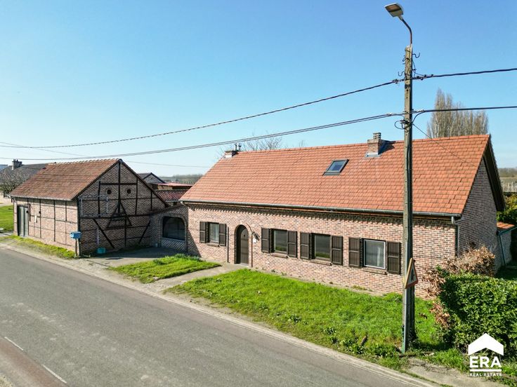 Deze woning biedt een bewoonbare oppervlakte van 157m² (volgens opgave EPC) en kent de volgende indeling: Gelijkvloers: vanuit de ruime inkomhal betreed je de woonkamer met gashaard en naastgelegen gelijkvloerse slaapkamer met en-suite badkamer. Achter de woonkamer bevindt zich de wasplaats met toegang naar de tuin, alsook een bureelruimte (of tweede gelijkvloerse slaapkamer).De ruime woonkeuken geeft eveneens uit op de tuin en is een groot pluspunt voor wie van buitenruimte houdt. 1e verdieping: nachthal met overloop en mogelijkheid tot het plaatsen van een dressing, de tweede badkamer, alsook 2 zeer ruime slaapkamers. Langs de woning bevindt zich nog een atelierruimte en 5 paardenboxen. De woning is dus ook uitermate geschikt voor dierenliefhebbers of diverse doeleinden. Troeven: + dak recent vernieuwd + landelijke ligging