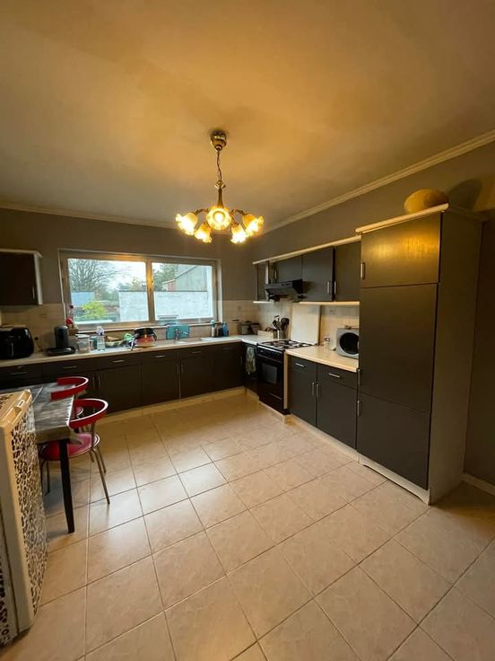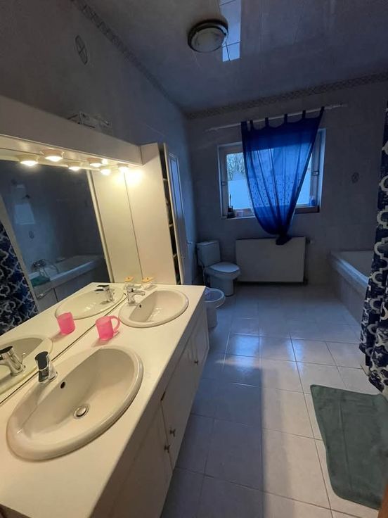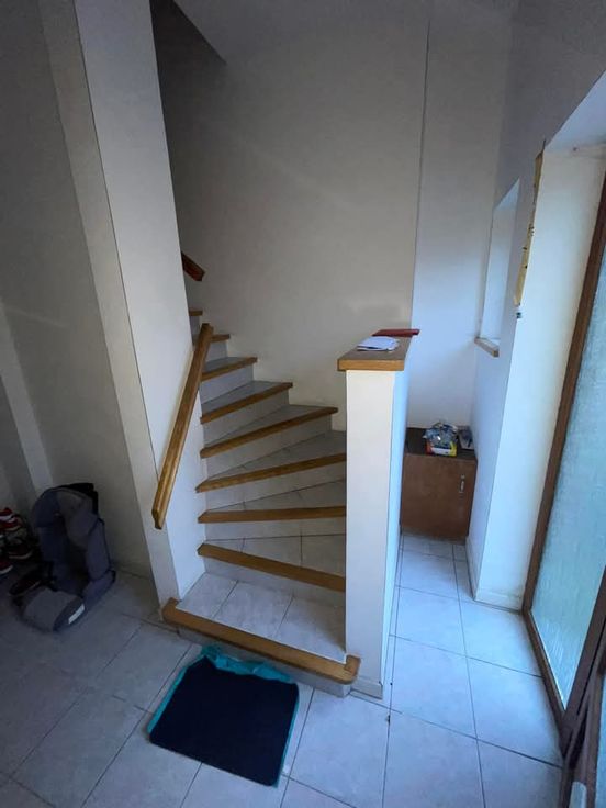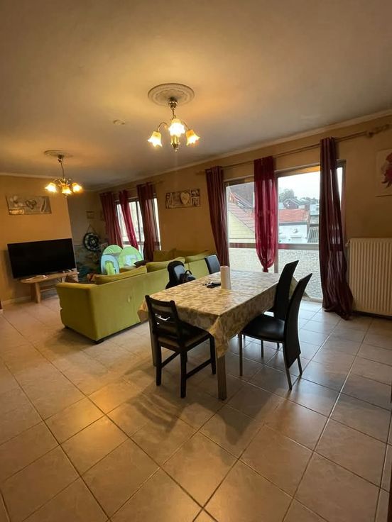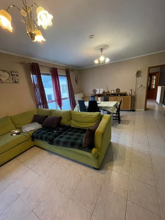 Belle étage en bon état : proche des entrées des autoroutes. Rez-de-Chaussée: Garage, hall d'entrée, débarras. 1 er étage: salon et salle à manger de 32 m2, cuisine équipé, hall de nuit, salle de bain et douche avec wc, buanderie, 2 chambres spacieuses, toilette , combles. Chauffage au gaz. Surface total: 142M2. Visite sur RDV . Tel: 0476/81.84.03