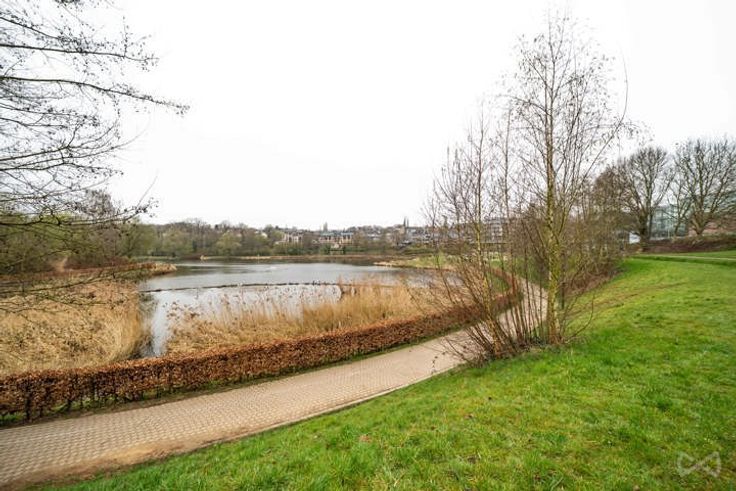 Studio gelegen aan de achterzijde van het gebouw (niet aan de straatkant) met vrij uitzicht over een groene, bosrijke omgeving. Op het oosten.