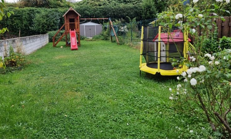 À l’extérieur : grand jardin, vaste terrasse et passage latéral – idéal pour profiter des beaux jours !