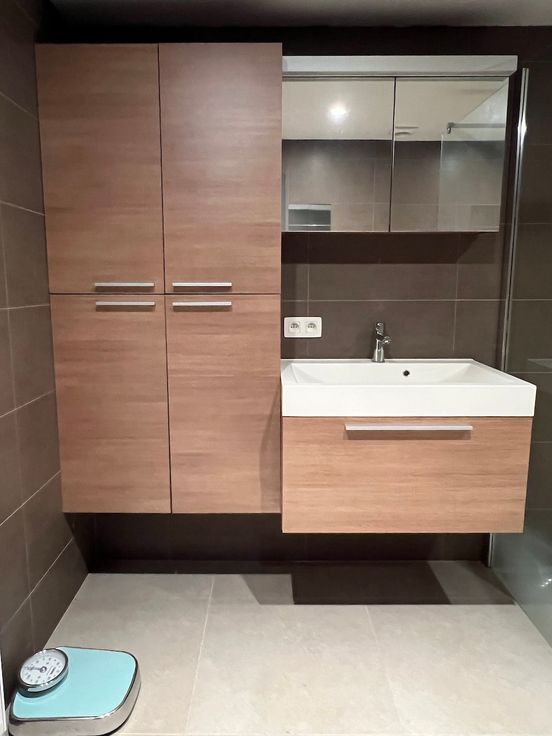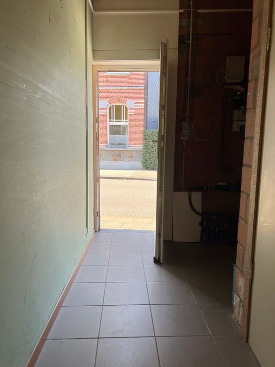 Via de inkom bereik je links de leefruimte met schuifraam naar de tuin alsook de half-open ingerichte keuken met twee bergingen waarvan één toegang geeft op de straat. Een eerste slaapkamer op het gelijkvloers naast de recent vernieuwde badkamer met inloopdouche.