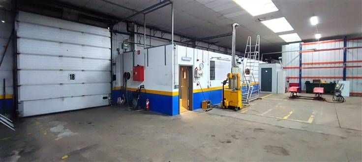 Sorry er is geen nederlandse vertaling beschikbaar. AUVELAIS: Dans le zoning industriel, Entrepôt de +/- 600m² (+/- 31,7m x 19,00m). Hauteur plafond : 4,80m, hauteur de passage porte de garage : 4,00m, sanitaires, 2 bureaux à l'avant, porte sectionnelle électrique, chauffage via aérotherm (cuve à mazout), parking +/- 10 voitures. Compteurs de passage pour l'électricité et l'eau. LOYER : 2.500 euros/mois (précompte immobilier+ taxes compensatoires inclus). Possibilité de louer un parking extérieur de 2.500m² pour 1.500 euros /mois en + du loyer.
