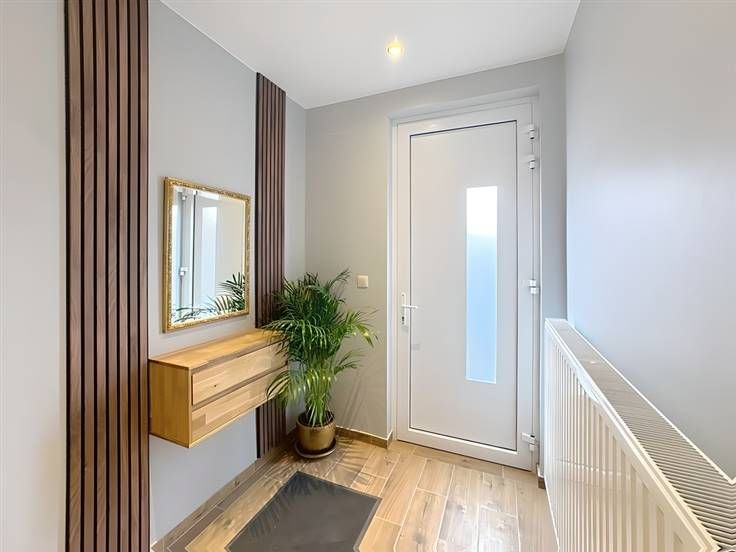 Bij binnenkomst ontdekt u een doordacht ingerichte leefruimte met een volledig uitgeruste keuken (kookplaat, dampkap, magnetron, wasmachine, koelkast) die alle comfort voor het dagelijks leven biedt.