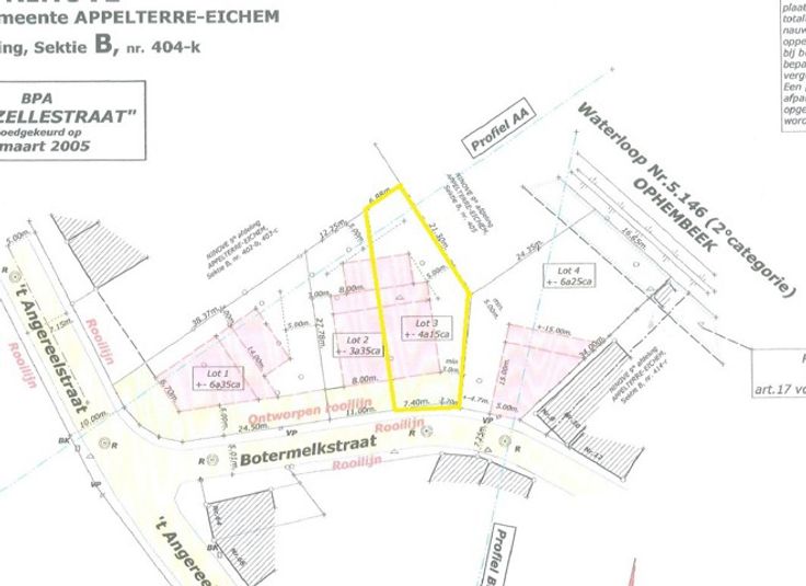 Voor een bezoek of meer info bel 054 69 39 34 - BOUWGROND VOOR HOB - In een rustige straat bevindt zich deze bouwgrond (Lot 3) voor HOB op een perceel van ongeveer 4are 15ca. Het treinstation, een buurtwinkel en een schooltje bevindt zich op een steenworp. Aan de straatzijde mag er 7,4 meter breed gebouwd worden. De perceelbreedte bedraagt ongeveer 10.5 meter. De bouwdiepte op het gelijkvloers bedraagt 15 meter, op het verdiep 12 meter. Mogelijkheid tot het bouwen van een extra bergplaats/garage.