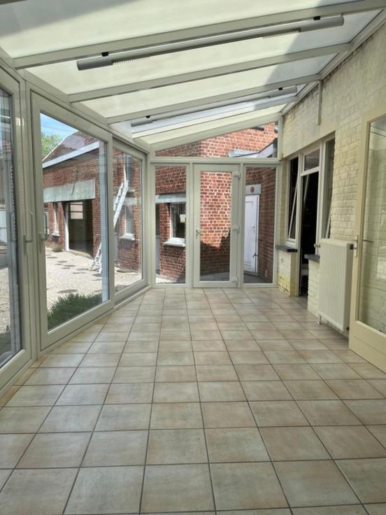 Maison située au centre du village et à proximité de tous commerces, sise sur et avec 4 ares 35 centiares, comprenant: un hall d'entrée, un salon et une salle à manger, une cuisine contenant un évier double, une taque, une hotte, un four et un frigo, une cave, une salle de bains avec wc, lavabo et une baignoire, une véranda s'ouvrant sur le jardin, une buanderie-chaufferie, un wc extérieur, une petite étable, un atelier et un grand garage avec un accès donnant sur la rue Albert - 1er étage: 2 chambres, un bureau et une petite pièce - 2e étage: grenier aménageable (isolé par le sol) - chauffage central au gaz de ville - citerne à eau de pluie - portail électrique (sur l'avant) - RC: 644 €