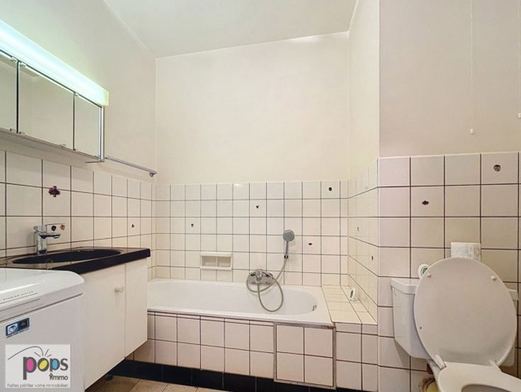 FOREST/UCCLE - Roosendael - Très Agréable appartement 1 Chambre AVEC Garage et Cave, ± 67 m². à rafraichir. L'appartement est au 2e étage d'un petit immeuble de 4 étages dans le quartier Altitude 100/Mozart/Alsemberg et à proximité immédiate de tous commerces, écoles ou transports en commun. Il se compose comme suit: Hall d'entrée avec Placard, Parlophone et Porte Blindée, séjour ± 30m² avec Feu Ouvert décoratif, 1 Chambre de ± 14m² donnant sur la terrasse, Cuisine vintage semi équipée (Evier, armoires, cuisinière et Frigo), Terrasse de ± 7m² très bien orientée au Sud, Salle de bains (lavabo, baignoire, wc et emplacement machine à laver), Cave, Box de Garage fermé obligatoire (35.000€ supplémentaires). Châssis double vitrage à l'avant. Chauffage central au Gaz - Radiateurs avec calorimètres RfiD- PEB:E+ (226KwhEP/m²/an - 45Kg Co²/m²/²an). Charges de ± 228€/mois (appartement et garage) pour le chauffage, l'eau privative, entretien des communs, assurances et syndic. A visiter sans tarder - Pour visites et info 02/880.00.69 ou www.popsimmo.be