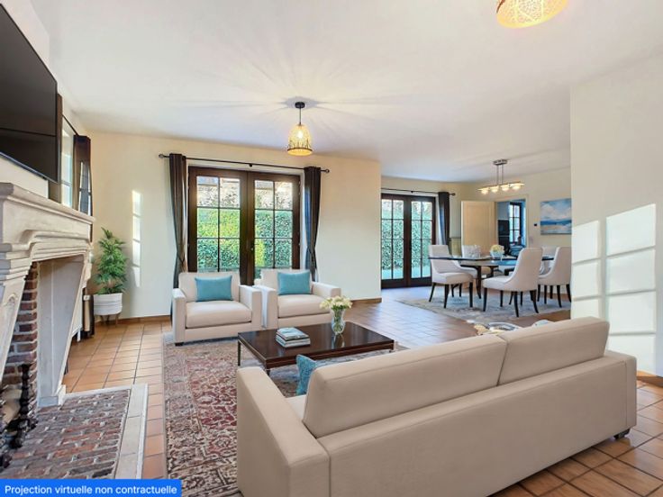 Charmante villa gebouwd in 1990 op een mooi perceel van 8 are in een rustige woonwijk van Hoeilaart. Woonkamer met open haard & eetkamer +/- 65 m², super ingerichte keuken met ontbijthoek, bureau, 4 slaapkamers, 4 badkamers, garage voor 2 wagens, zolder, verwarming op gas. Zonnepanelen, airconditioning. Stopcontact voor elektrisch voertuig. Robot grasmaaier. EPC 156kWh/m²/an (B). Informatie en oppervlakte worden alleen ter informatie gegeven en zijn niet contractueel bindend.