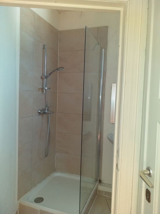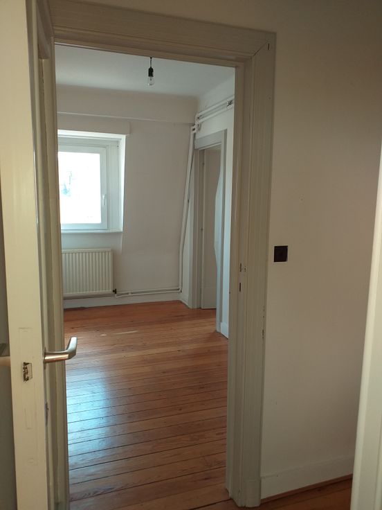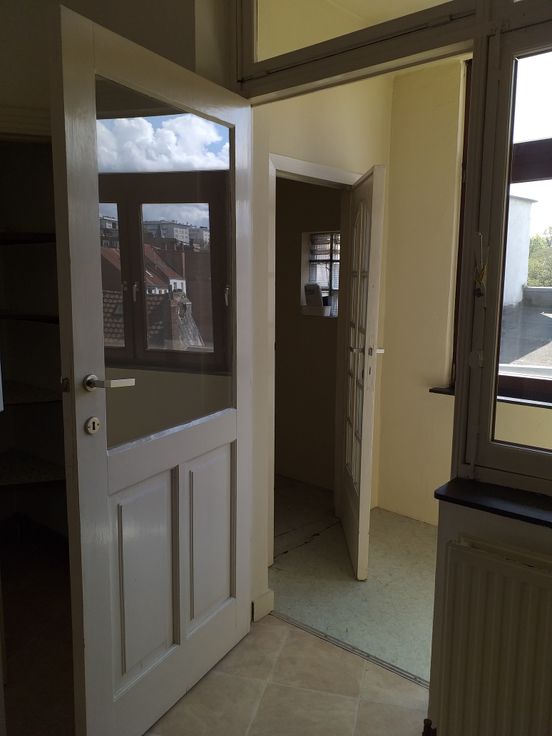 Hall, Séjour, 1 petite chambre et 1 grande chambre, terrasse, cuisine équipée, salle de douche, WC séparé. Loyer 910€ + 65€ comprend, provisions (eau - électricité des communs et nettoyage des communs) forfait (assurance responsabilité, gestion de l'immeuble et entretien de la chaudière). Pour visite 0473/94 12 60.