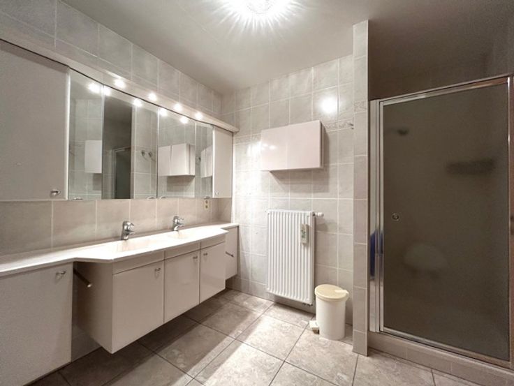 Ontdek dit prachtig appartement gelegen op de 3de verdieping boven het NINIA shoppingcenter, gesitueerd in het hart van Ninove, op de bruisende centrumlaan, een absolute toplocatie. Dit appartement biedt u een lichtrijke en ruimtelijke leefruimte met een duurzame, geïnstalleerde keuken, 2 uitnodigende terrassen aan de voor- en achterzijde van het appartement, een praktische berging/wasplaats naast de keuken, een inkom- en nachthal met vestiaire en apart toilet en een ingerichte badkamer met ligbad, douche en dubbele wastafel. Het appartement beschikt ook over 2 volwaardige slaapkamers (16-14m²), een private kelder van 10m², een ondergrondse private garage met automatische poort van maar liefst 38m² waar u ook veel stockageruimte heeft en 2 autostaanplaatsen (P7 en P40) op de dakverdieping. Verder is het instapklaar en energiezuinige appartement voorzien van alle moderne gemakken zoals een lift, videofoon, waterverzachter, ventilatie, hoogrendementsbeglazing ALU, centrale verwarming op aardgas, op maat gemaakte kasten, conforme elektrische installatie, gemeenschappelijke tuin en een ondergrondse wasplaats voor uw eigen auto (enkel te gebruiken voor de bewoners). Winkels, scholen, openbaar vervoer, dienstencentra (apothekers, ziekenhuis, ...) zijn allemaal te bereiken op wandelafstand. Dit is wonen op een toplocatie, zonder zorgen, en direct te betrekken of een unieke kans om te investeren in een prachtig appartement met uitstekende ligging!