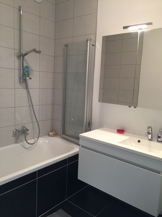 - badkamer met bad en douche wand