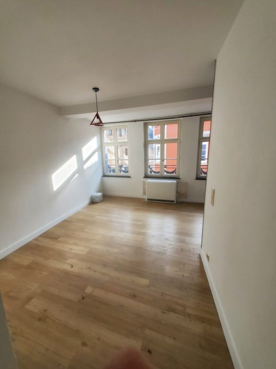 POUR PERSONNE SEULE, CALME ET SÉRIEUSE EXCLUSIVEMENT. Petit (41 m²) mais charmant, cet appartement se trouve au 2e étage d'une ancienne maison rénovée (sans ascenseur) au cœur du Vieux Namur, dans la zone piétonne. Il comprend : espace séjour, cuisine attenante semi-équipée (taque de cuisson, frigo, hotte), 1 chambre, salle de douche avec WC. Les charges communes de 75 euros incluent la consommation privative d'eau chaude/froide, l'entretien/l'électricité des communs. La consommation privée d'électricité est à charge du locataire (compteur privatif). Chauffage : électrique. Pas de chien. Bail de 1 an renouvelable. Garantie locative de 2 mois. RÉFÉRENCES EXIGÉES. Intéressé(e) ? Contactez-nous d'abord par e-mail EN VOUS PRÉSENTANT SUCCINCTEMENT, nous vous recontacterons pour vous informer du jour et des heures de visite.