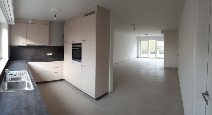Indeling : Er is een inkom met kasten en een lichtrijke woonkamer (45 m2 ) met een grote open keuken. De keuken is uitgerust met Siemens toestellen ( oven , kookplaat , koelkast met vriesvak en vaatwas ). Naast de keuken bevindt zich een berging (10 m2) met schappen en aansluiting voor wasmachine en droogkast. Verder zijn er 2 slaapkamers ( 14 en 14 m2 ) , een badkamer met dubbele lavabo en inloopdouche (7 m2 ) en een apart toilet. Tenslotte is er een zuid gericht inpandig terras ( 10 m2) .