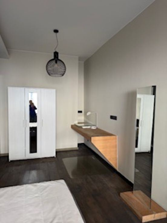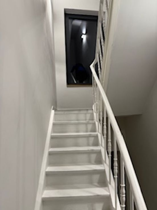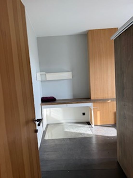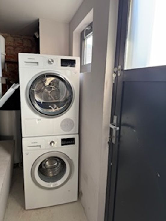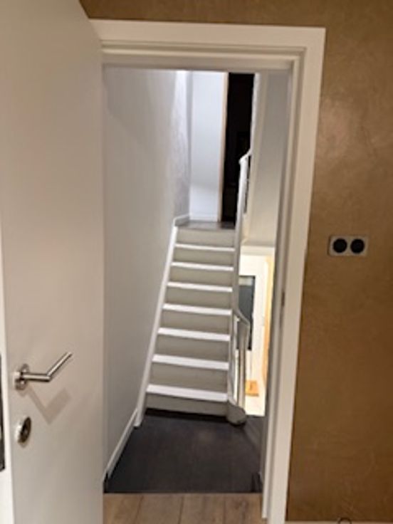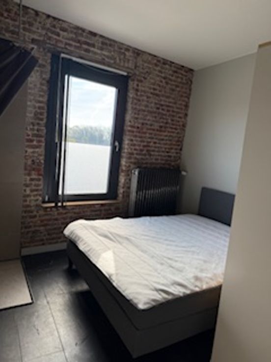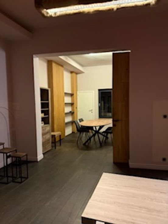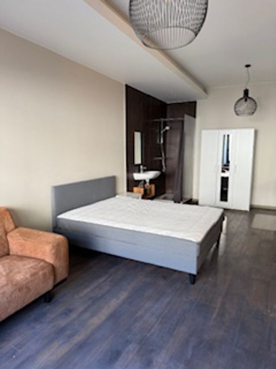 Bij binnenkomst valt direct de veelzijdigheid van deze woning op. De gelijkvloerse verdieping herbergt een ruime kamer met eigen douche en lavabo en een gemeenschappelijke volledig uitgeruste nieuwe keuken (vaatwasser, koelkast, diepvriezer, kookvuur en ook extra ijskast met vriezer) en toilet. Er zijn 2 toegangsdeuren tot het gebouw en er is plaats voor de fietsen. Op de tussen verdieping is er een ruime design badkamer met ligbad, inloopdouche, toilet en lavabo.