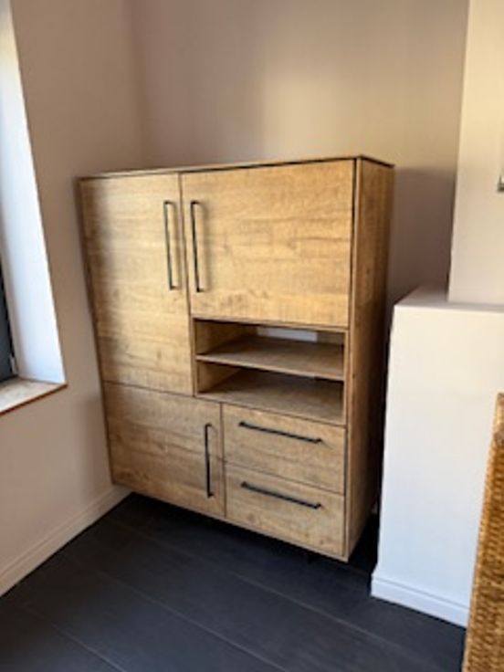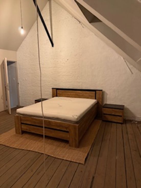 Het gebouw heeft prachtige designdeuren en is volledig ingericht. Er is ook een wasmachine en droogkast aanwezig. Overal ligt massieve eiken parketvloer met brede planken (enkel op de hoogtste kamer is een plankenvloer). De woning is gemeubileerd, in elke kamer staat een dubbel bed, kleerkast en bureau. In de kamer op de gelijkvloers is ook een zetel voorzien.