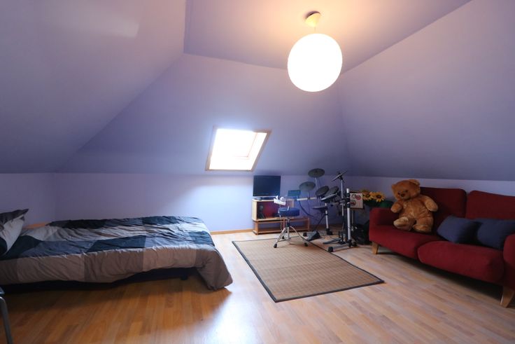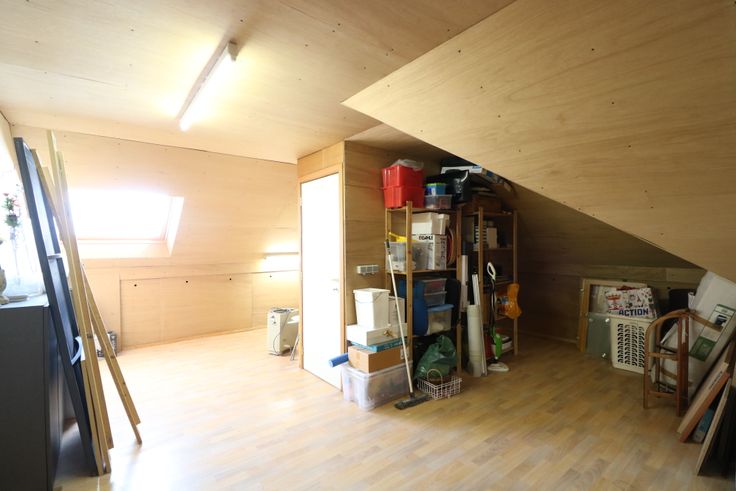 - ruime zolder met werkbank en grote Velux.