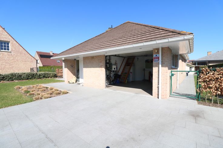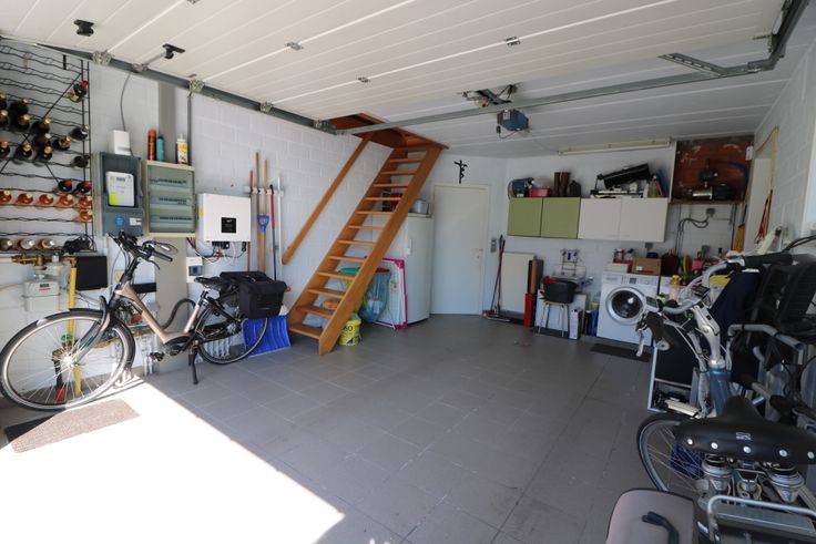 - brede garage met aansluiting voor de wasmachine en droogkast;