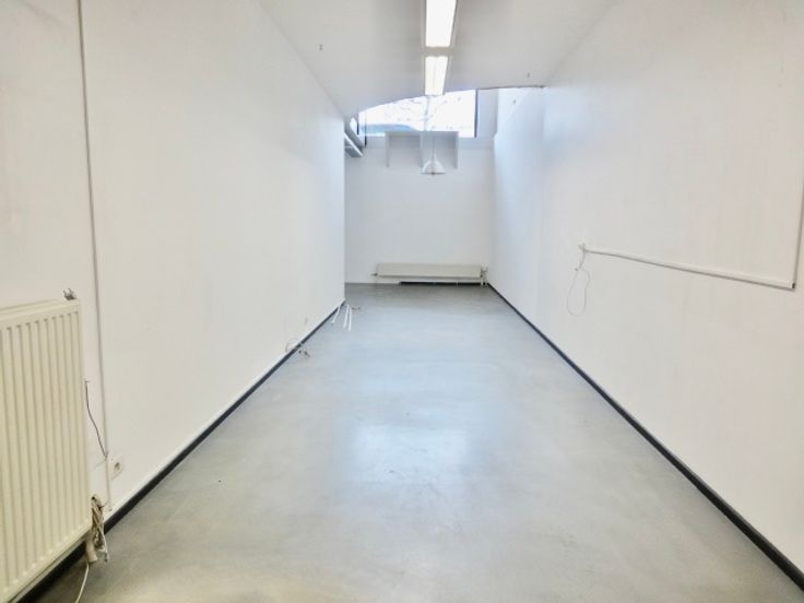 Indeling: gelijkvloers op epoxyvloer, lengte 15,80m met vooraan een open zicht op lager gelegen ruimte en achteraan een keukengedeelte met aanbouwkasten, geïntegreerde koelkast met vriesvakje en spoelbak, toilet met handenwasser. Centraal in de ruimte is een trap naar benedenverdieping die een lengte van 21m heeft + een bergruimte van 5m2. Spots, industriële lichtarmaturen en alarm aanwezig. Energiezuinige cv condensatieketel op gas van 2020. EPC: B-label. Goedgekeurde elektriciteit. Asbestveilig.125 euro maandelijkse kost voor water, blokpolis, syndicus en algemene kosten gebouw. Dit pand biedt vele mogelijkheden.