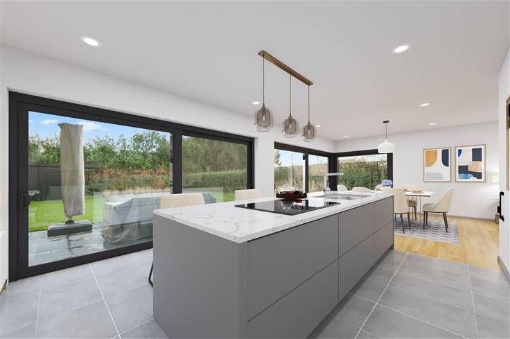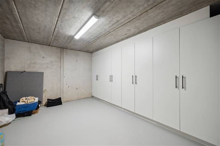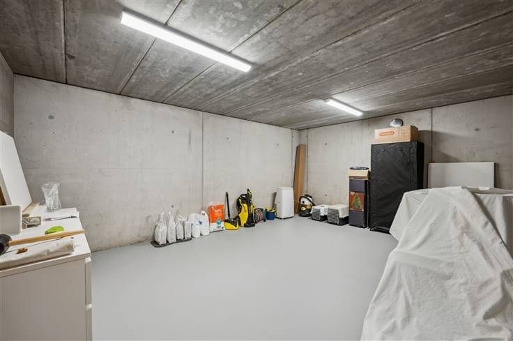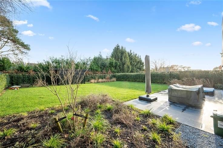 Deze volledig en luxueus afgewerkte nieuwbouw, is op alle vlakken instapklaar. Zo omvat de volledig aangelegd tuin een mooi zwart tuinhuis, omheining, grasveld, levende hagen en een gunstig georiënteerd terras. Deze moderne woning met zwarte alu-ramen en gelijmde MBI-betonsteen, zit genesteld aan het einde van een doodlopende straat, naast een eiken/sparrenbos. U parkeert hier maximum 4 wagens (wachtleiding laadpaal). Het extreem lage energieverbruik, blijkt uit het E-peil van 6, dat bereikt wordt dankzij afstandsbediende screens, rolluiken, veralgemeende vloerverwarming, warmtepomp, 10 zonnepanelen en een doorgedreven isolatieniveau. Deze woning verdient zeker de prijs voor de mooiste kelder, afgewerkt met ingebouwde kasten, mooie deuren,waterverzachter, dataleiding, gladde vloer, etc. Op het gelijkvloers zijn er eyecatchers in overvloed zoals 2 grote schuiframen, smeeddeur met glas, een open keuken met een eiland van 3m, een gashaard, schilderwerk (2023), XL-berging met inbouwkasten, etc. De witte keuken is voorzien van een Quooker, veel lades en ATAG-apparaten: kookplaat met ingebouwde afzuiging, koelkast, 2 combi-ovens en een vaatwasser. Boven verrassen de 4 ruime kamers, de vele inbouwkasten, de beklede betontrap en de lichtinval. De douchekamer met inloopdouche en lavabomeubel met kolomkast, beschikt net als de badkamer over één verwarmde wand. In de badkamer vinden we buiten het ruime bad, ook een gelijkaardig meubel met spiegelkast.
