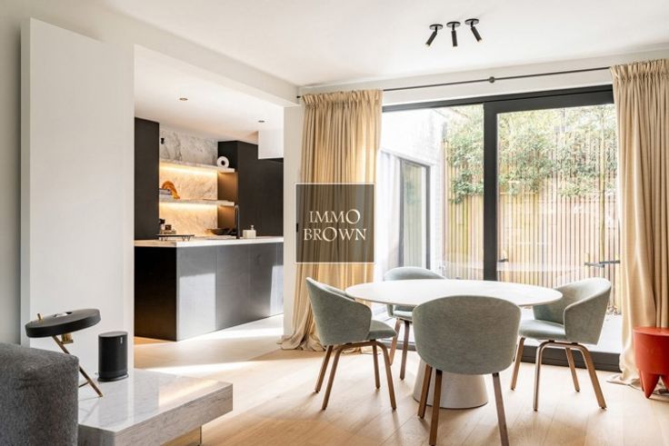 Hoogwaardig gerenoveerde woning gelegen in het oude knokke, op enkele passen van de Magere Schorre, de Boslaan en de markt. Indeling: inkomhal met gastentoilet en vestiaire. Berging met wasmachine en droogkast. Gezellige woon- en eetkamer met gashaard. Volledig uitgeruste open keuken op maat voorzien van alle comfort. Zuidgerichte koer. Eerste verdieping: 1ste ruime slaapkamer met aansluitende douchekamer. Tweede ruime slaapkamer met douchekamer (dubbele lavabo en douche).Toilet op de nachthal. Tweede verdiep: 3de volwaardige slaapkamer met aansluitende douchekamer. Alle slaapkamers zijn voorzien van tal ingemaakte kasten. Apart toilet. Technische berging. Berging naast de woning en vooraan de woning is er nog een extra fietsenberging. Kortom : een perfect instapklare woning die tot in de puntjes werd afgewerkt met hoogwaardige materialen.