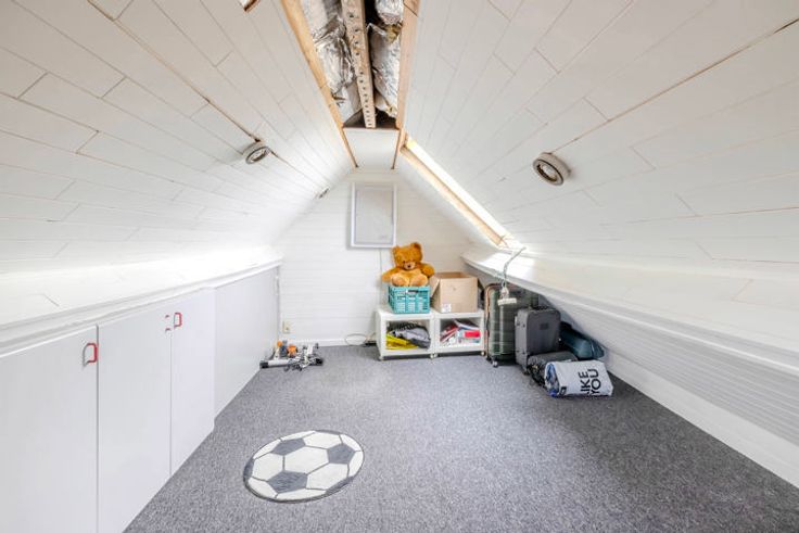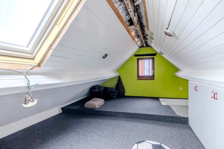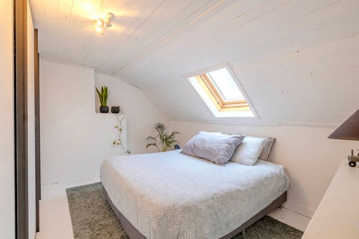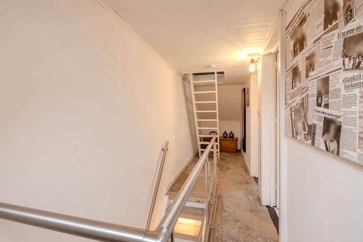 1V: nachthal; 2 slaapkamers waarvan één met ingemaakte kast; vaste trap naar de zolderverdieping (in te richten als 3e slaapkamer).