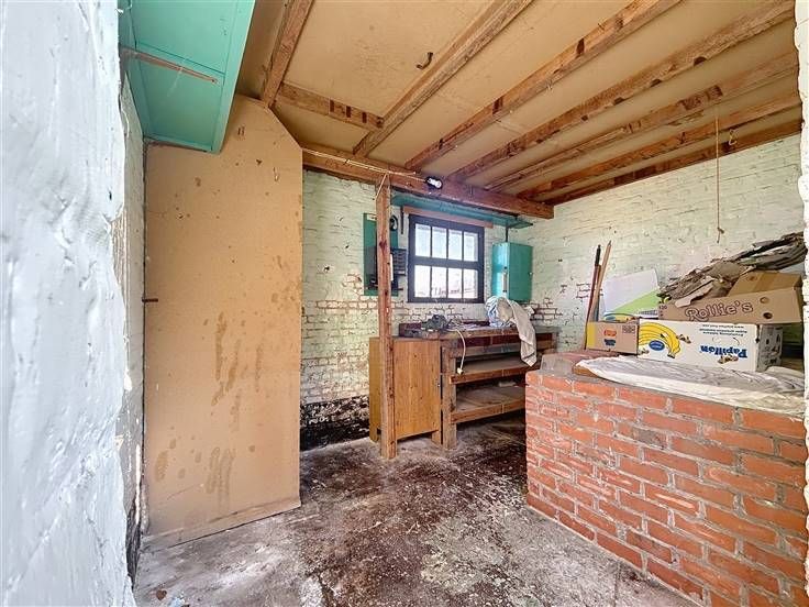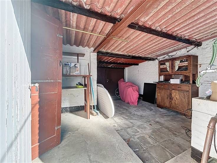 OPENDEUR ZATERDAG 26/04 VAN 9U30 TOT 10U30 Knusse, halfopen woning met ruime tuin en garage in rustige wijk te Elverdinge. De woning is als volgt ingedeeld: Gelijkvloers: leefruimte met open keuken, 2 slaapkamers, badkamer met lavabo, bad/douche en toilet, kelderberging en hal. 1e verdieping: ruime zolder met mogelijkheid tot creëren van extra kamers. Tuin met visvijver, koterijen en garage met uitweg achteraan.