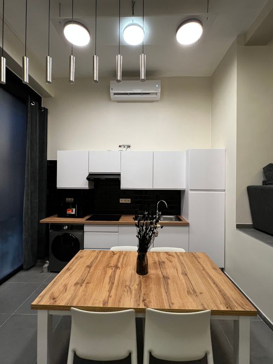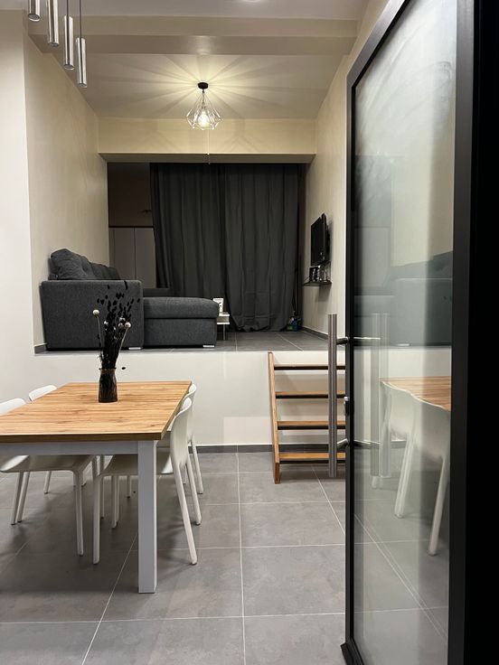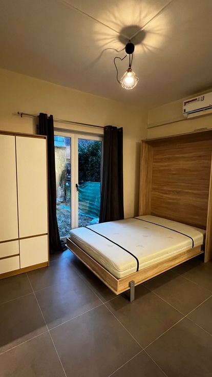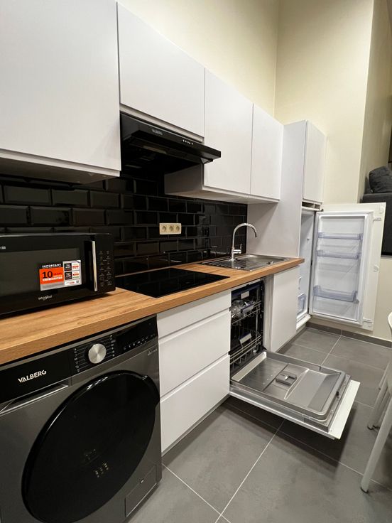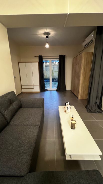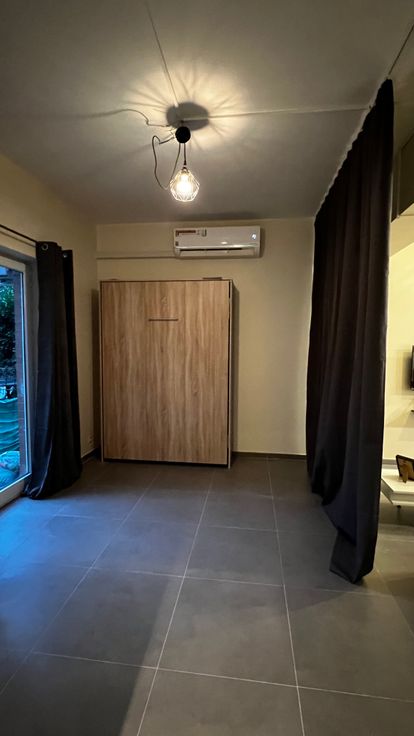 Il s’agit d’une première occupation après rénovation.Il se compose d’une cuisine entièrement équipée, taque vitrocéramique, lave-vaisselle, hotte, micro-ondes, frigo, congélateur, machine à laver, salle manger grande table extensible, coin canapé en L transformable en lit, télévision SMART TV, coin deuxième lit escamotable, WC séparer, salle de bain douche à l'italienne, meuble de SDB, jardin privatif de +/- 17m2.
