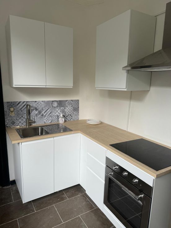 Cuisine neuve et entièrement équipée : frigo, congélateur, taques, four, hotte