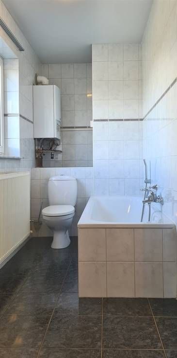 Eetkamer/zitplaats - keuken - berging - badkamer met ligbad, badkamermeubel en toilet - 1 slaapkamer.