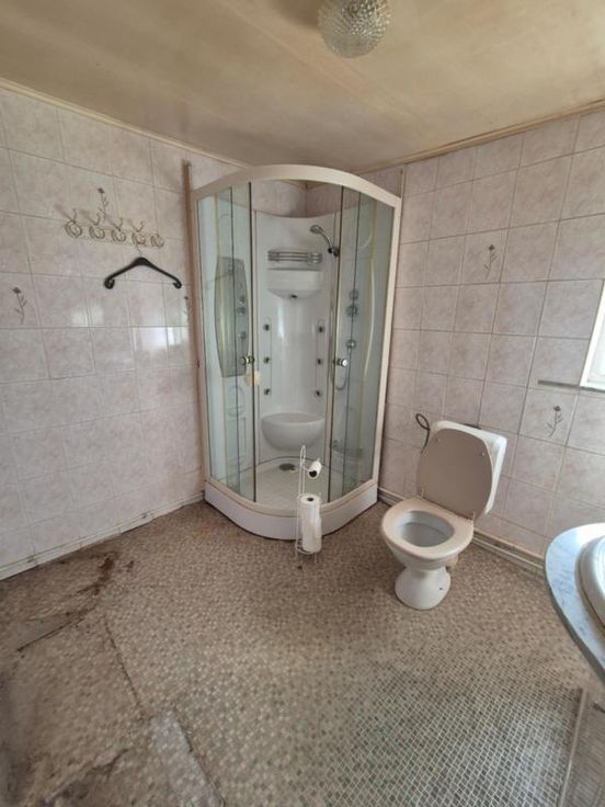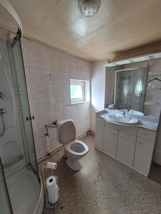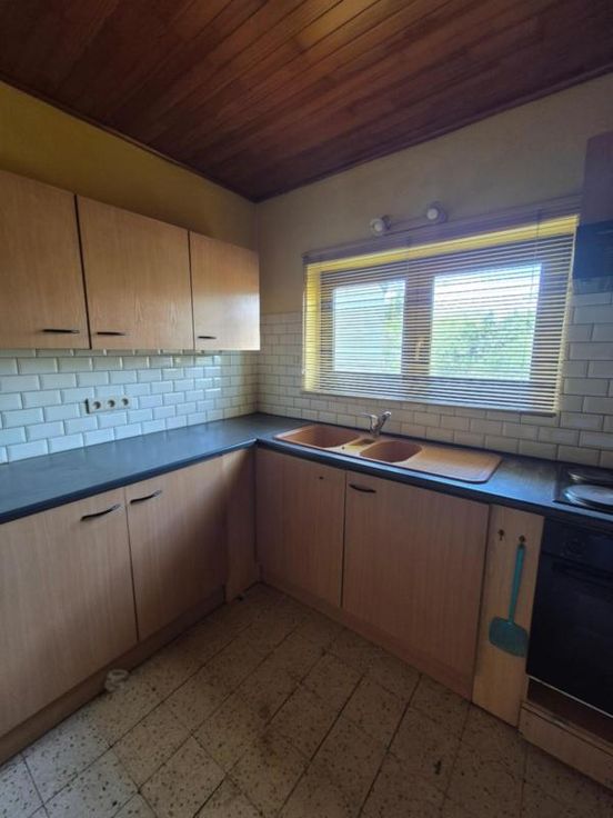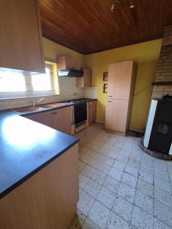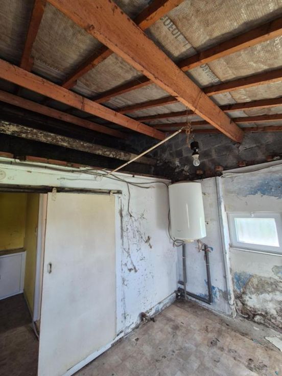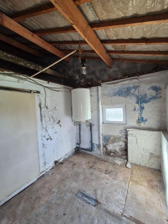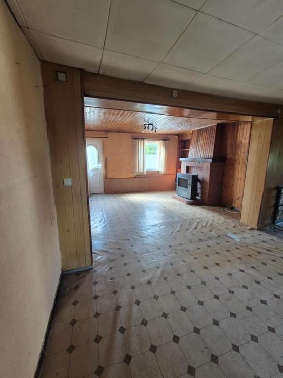 Maison d'habitation à rénover composée: sous-sol: caves Rez-de-chaussée: une pièce de vie pouvant servir de salon, salle à manger, deux chambres, une cuisine, un espace de rangement/buanderie, une salle de bains. Etage: une chambre et possibilité d'aménager le grand grenier. Equipements: garage avec porte automatisée, jardin, châssis PVC double vitrage, feu au pelle, convecteurs au mazout (cuve dans le garage).