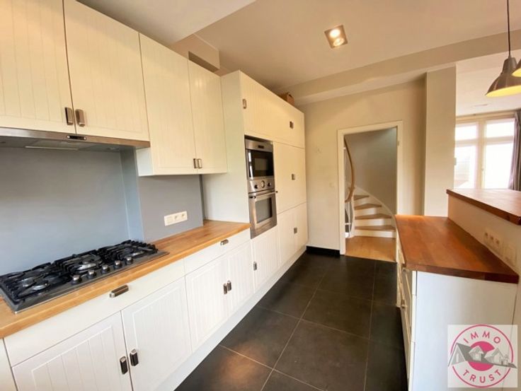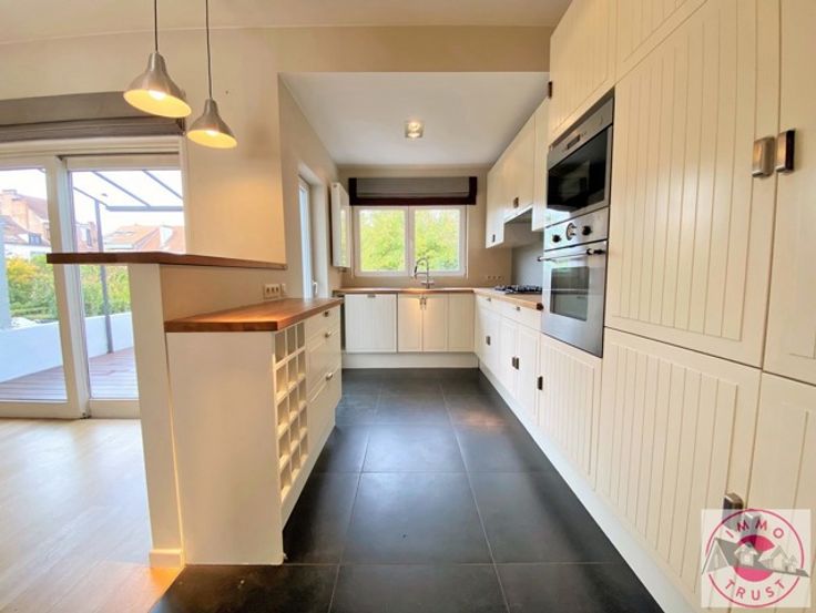 Watermael-Boitsfort, idéalement située proche du Bois de la Cambre, superbe maison bel étage de +/- 150 m² se composant au rez de chaussée d'un hall d'entrée, une chambre et une salle de bain, à l'étage séjour de 41 m² avec K7, cuisine super équipée, terrasse de 12 m², au 2ème étage 3 chambres et une salle de bain, au 3ème une pièce polyvalente. Disponible le 18/07. A VOIR SANS TARDER