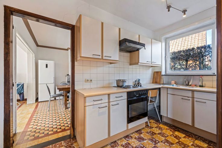 • Aangename woonkamer met eetplaats en aansluitende keuken met berging