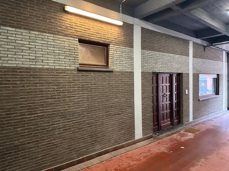 Via de handig hoge onderdoorgang kom je bij de 25 achtergelegen (overdekte) autostaanplaatsen en de multifunctionele loods.