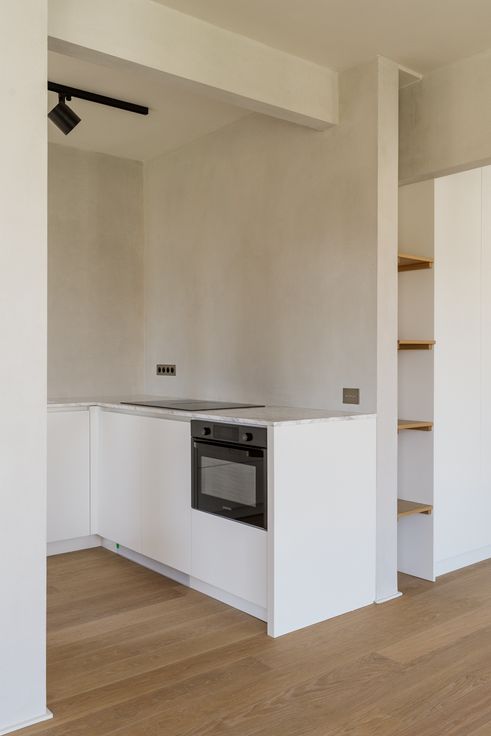 Het appartement werd volledig gerenoveerd in 2021 (zelfs de hal in de gemene delen en de liftdeur werden geschilderd). Een zuiver ontwerp waarbij geen vierkante meter verloren gaat en gewerkt werd met smaakvolle room dividers en sobere materialen zoals mortex en eik. De slaapkamer kan afgesloten worden van de leefruimte door 2 grote schuifdeuren. Houd je liever van een loft gevoel, dan laat je alles lekker openstaan. De badkamer sluit aan bij de slaapkamer en heeft een lavabo en douche. Het toilet bevindt zich apart. Neem enkel een bed, tafel, stoelen en sofa mee, de kasten zijn allemaal al ingemaakt. De keuken met een marmeren werkblad heeft leuke technische snufjes: een inductie kookplaat met ingewerkte dampkap (Novy) en een vaatwasser die je opentrekt als een lade. Ook hier opnieuw veel ingemaakte kasten. Het appartement heeft een hoge single & fabulous Sex and the City vibe (het ligt dan ook vlakbij de New Yorkkaai), maar kan tegelijkertijd ook een rustgevende thuishaven zijn na een drukke werkdag in bijvoorbeeld het Ziekenhuis aan de Stroom. Of wie weet ben je op zoek naar een beleggingsvastgoed zodat de huurder kan blijven wonen.