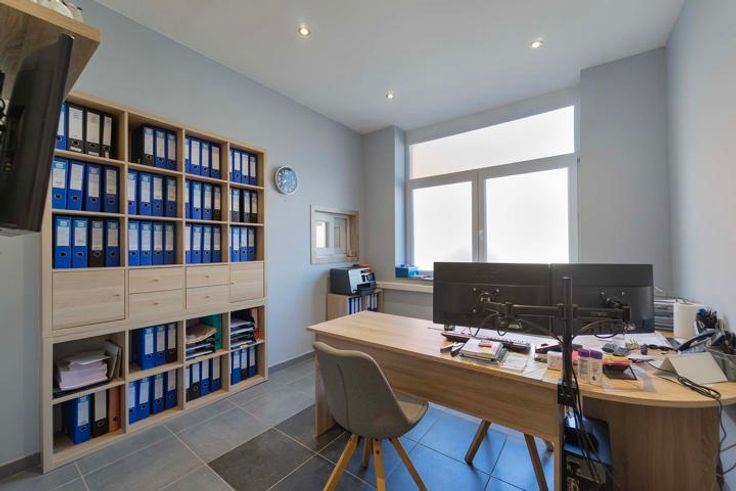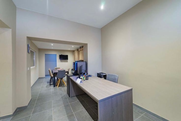 L'Atelier Immobilier vous présente ce superbe ensemble immobilier comprenant un vaste entrepôt (210m²) et bureaux (120m²). Situation géographique idéale à proximité des grands axes et commodités. L’entrepôt dispose d'une grande porte coulissante (6m. de large) et mène à un bel espace de stockage, 2 mezzanines et un petit atelier. L'espace bureaux se compose comme suit : hall d'entrée sécurisé, bureau d’accueil, cuisine équipée, 4 bureaux individuels dont un spacieux de 26m², vestiaire avec salle de douche, 2 wc et placard. Pompe à chaleur avec climatiseurs réversibles, 42 panneaux photovoltaïques, toiture de l’entrepôt récente (2019), double vitrage pvc. Un bien rare, en excellent état, à visiter sans tarder ! Prix : faire offre à partir de 295.000€ (sous réserve d’acceptation des propriétaires). Informations et visites au 071/72.72.01.