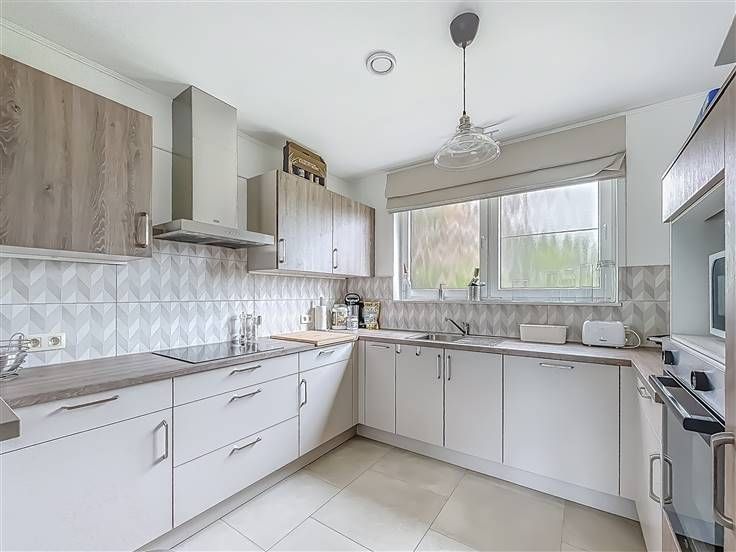 Hall d'entrée, buanderie, séjour avec cuisine entièrement équipée, bureau ou cellier.