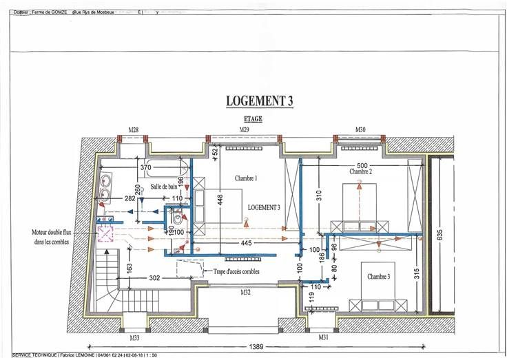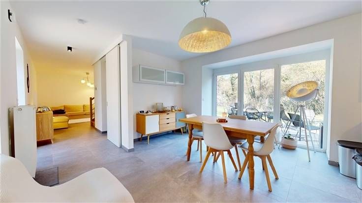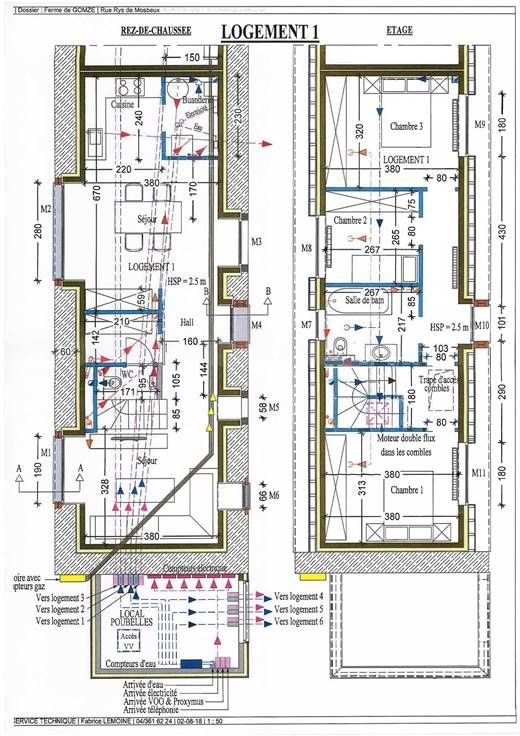 Equipements : sols carrelés (sauf parquet stratifié dans chambres), compteurs individuels pour l'eau, le gaz et l'électricité, ventilation double flux avec échangeur thermique, châssis en pvc avec double vitrage, chauffage central au gaz (chaud. murale à condensation Vaillant), production eau chaude couplée à la chaudière, installation électrique en conformité (compteur bihoraire).