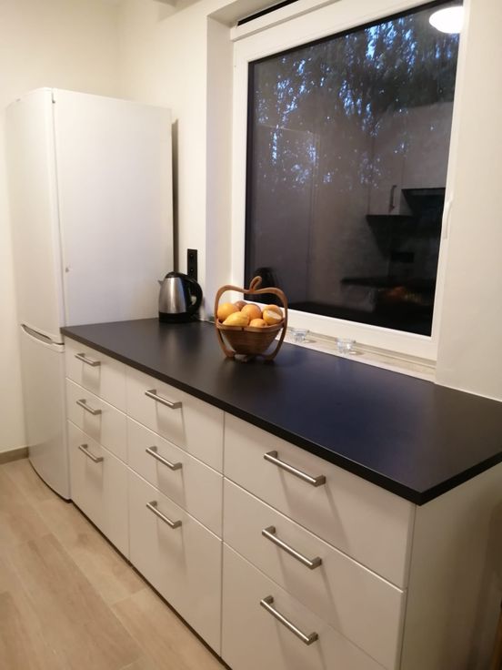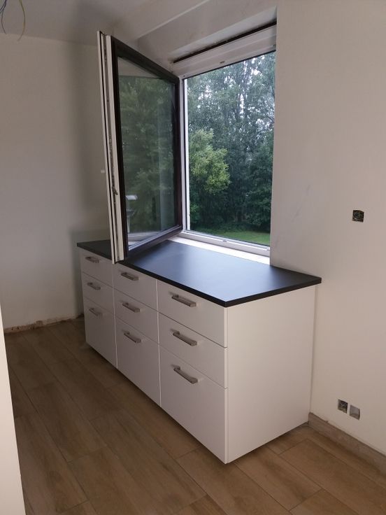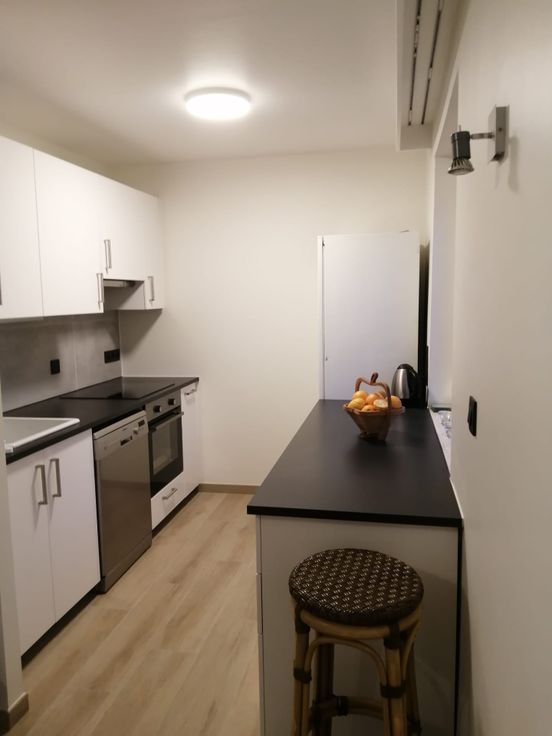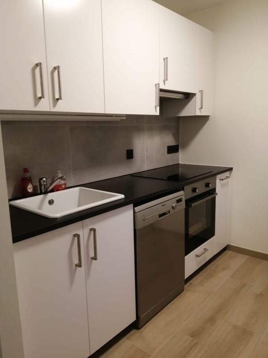 Cuisine équipée avec four + vitrocéramique + hotte + emplacement pour mettre votre frigo et votre lave-vaisselle.