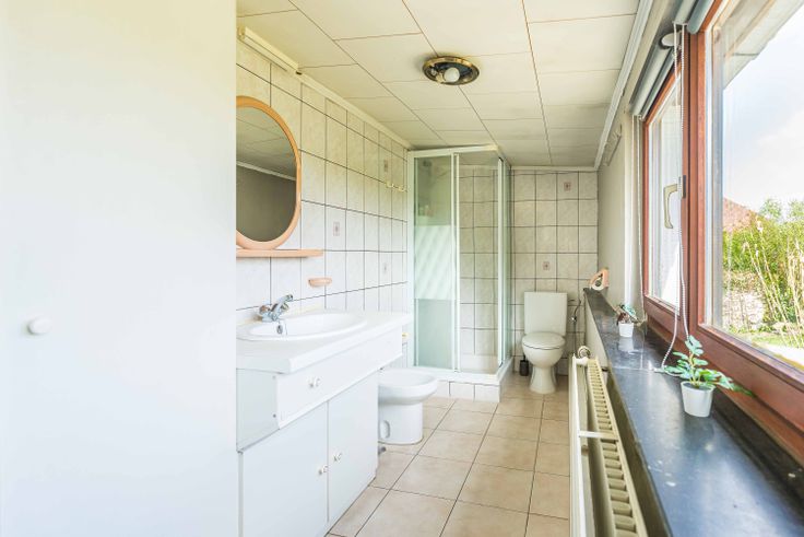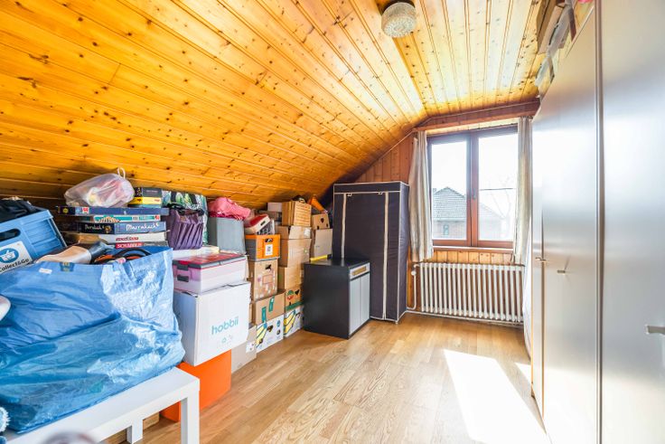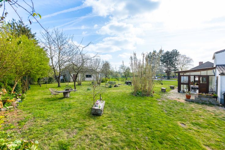 Elle dispose d’un garage et d’un grand jardin bien orienté avec une belle vue en bordure d’une zone agricole. Un atelier, situé au bout de la parcelle, pourrait être transformé en espace