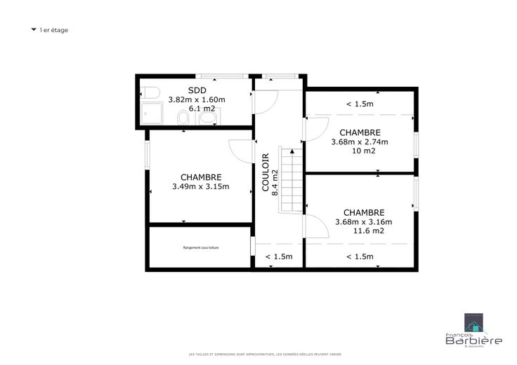 A l’étage, la maison dispose de 3 chambres et d’une salle de bain.