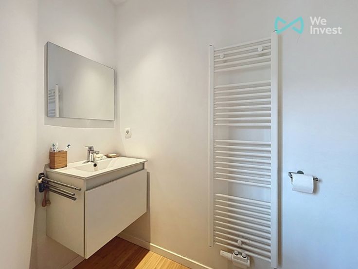 We Invest biedt u met plezier en in exclusiviteit dit lichtrijke appartement met twee slaapkamers aan, gelegen aan het Vossenplein (Place du Jeu de Balle).