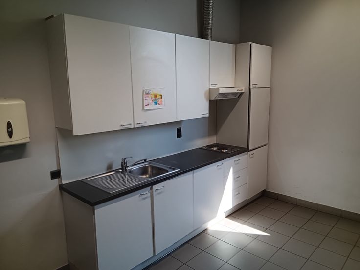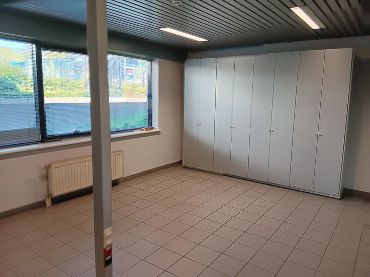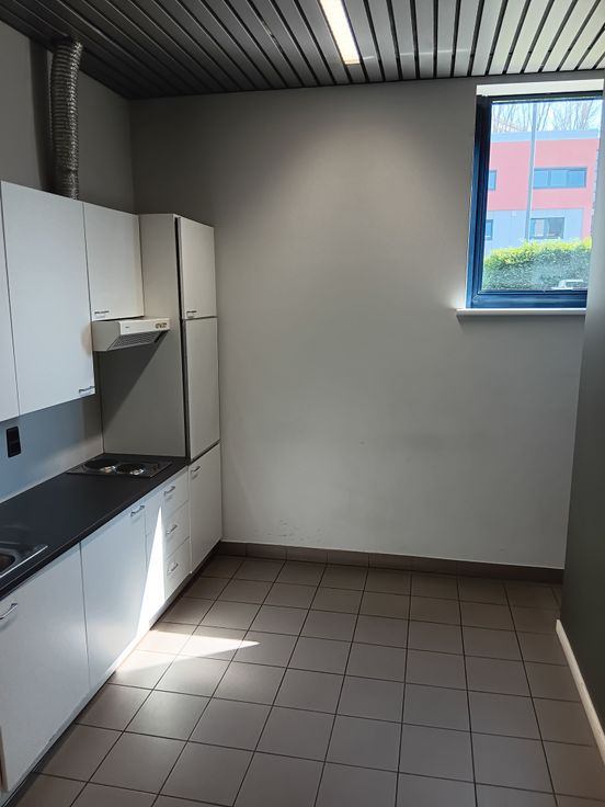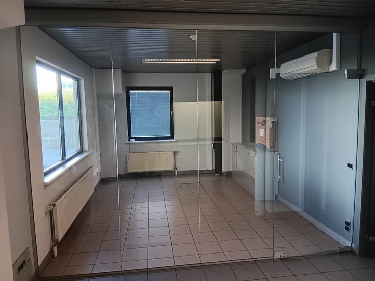 Te huur – Kantoorruimte van ongeveer 250m² met ontvangstlobby, 3 open werkruimtes, 2 afsluitbare kantoren, aparte toiletten voor dames en heren, half uitgeruste keuken en opslagruimte voor printer of server. L-vormige indeling, wifi en elektriciteit inbegrepen. 3 parkeerplaatsen overdag inbegrepen. Tijdelijk huurcontract (bail précaire) mogelijk. Heldere, functionele ruimtes, direct beschikbaar.