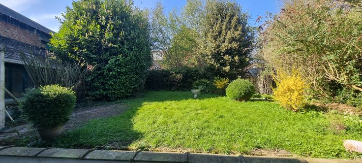 Cette maison se compose d'un salon, d'une cuisine, de 3 chambres (dont 1 plus petite), de 2 salles de bain, d'un garage, d'un joli jardin et d'une dépendance qui offre un certain potentiel.