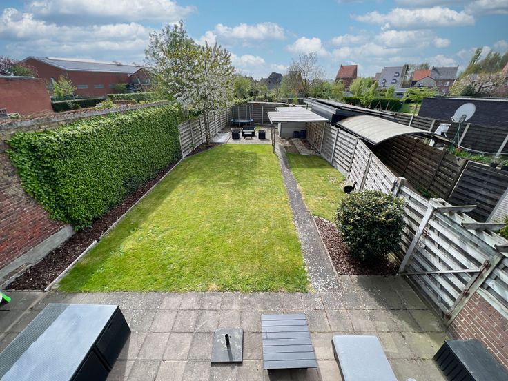 Tot slot beschikt deze woning over een zonnige tuin met terras en aparte zithoek, waar het aangenaam vertoeven is. Bovendien is er een carport aanwezig.