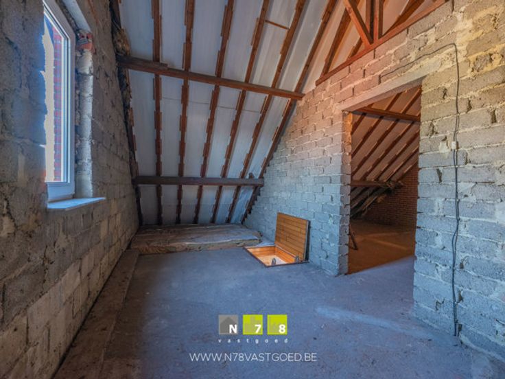 - Ruime zolder van ca. 49 m², nog in te richten naar wens (extra slaapkamers, bureau, hobbyruimte...).